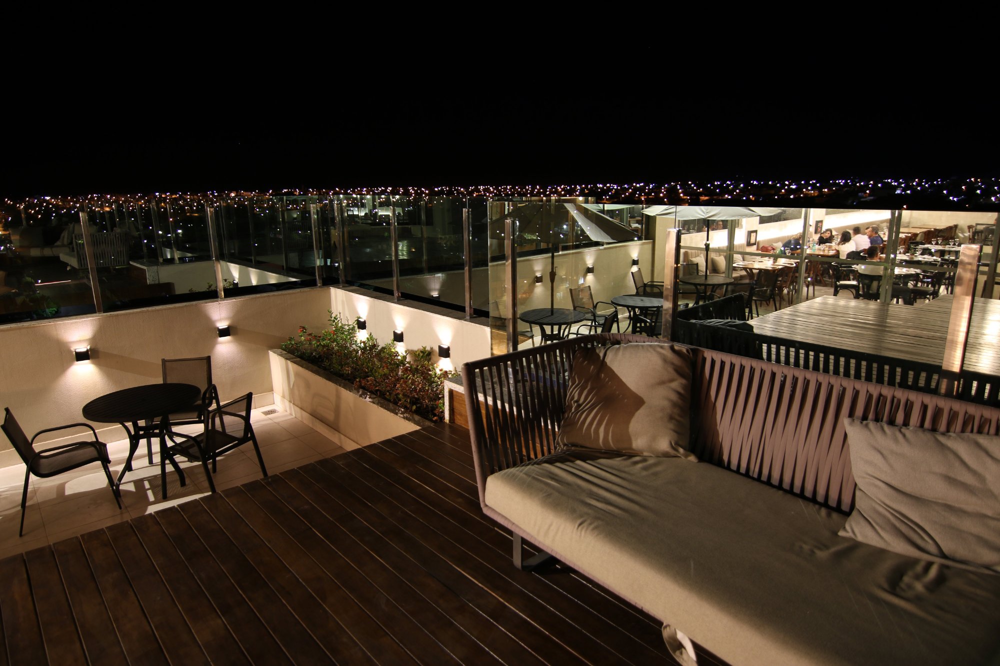 Possui tambem um restaurante com pratos e drinks maravilhosos e área externa com visão panorâmica de toda a cidade.